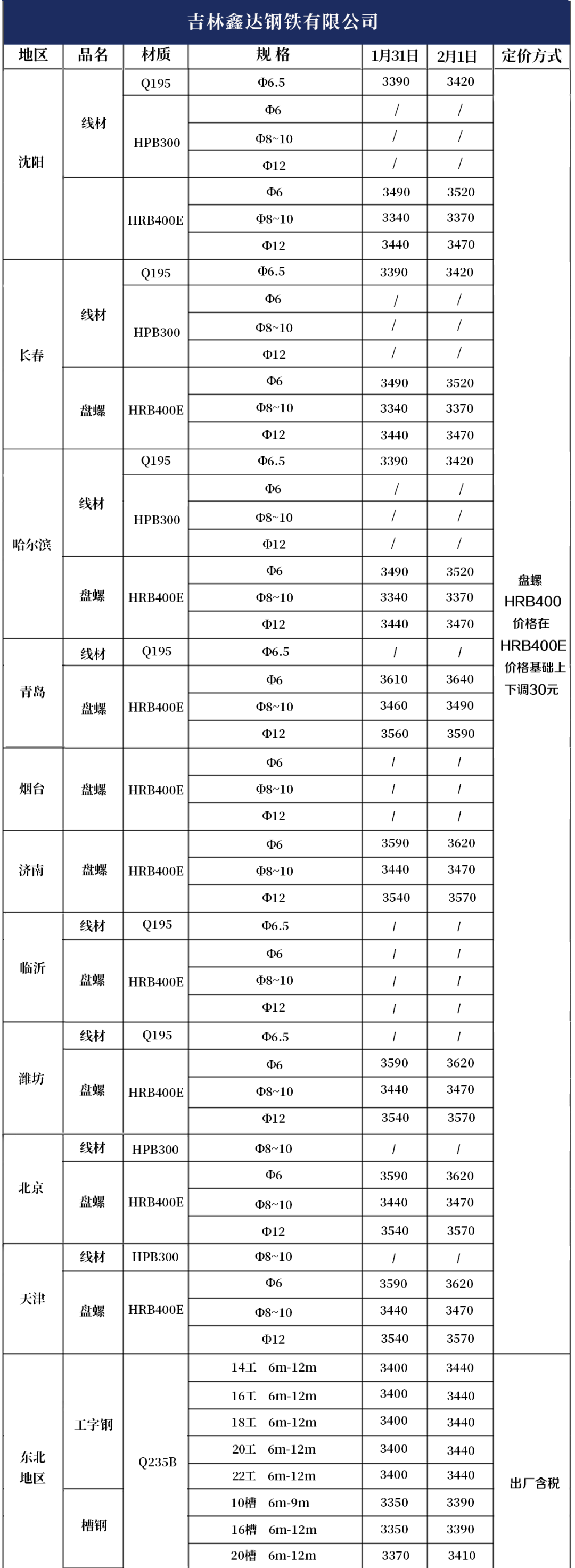 2月1日產(chǎn)品報價
