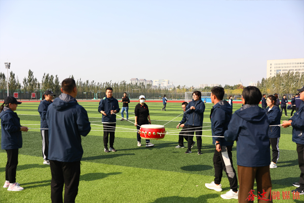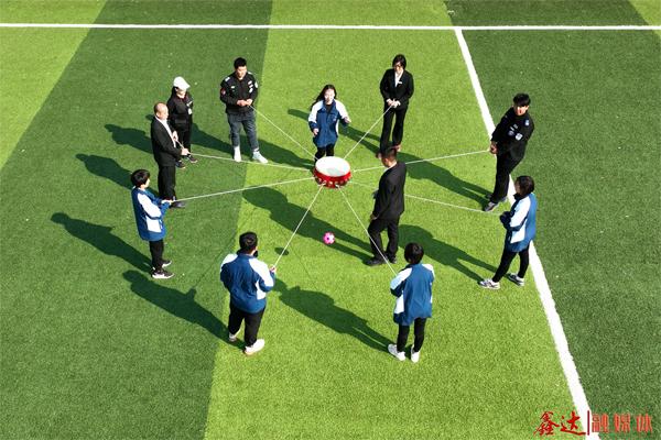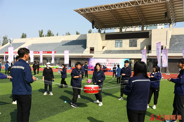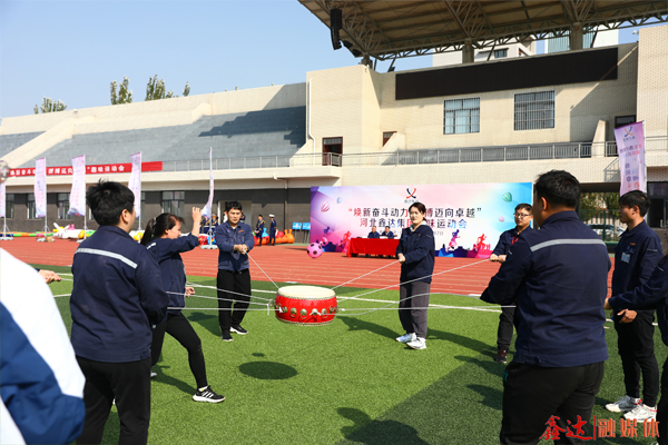 同心擊鼓項(xiàng)目中,運(yùn)動員默契配合,同心協(xié)力將鼓騰空,擊鼓顛球,將鑫達(dá)人心往一處想、勁往一處使、眼往一處看的精神體現(xiàn)得淋漓盡致。