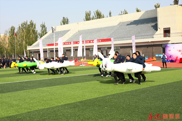 龜兔賽跑項(xiàng)目中,龜不再是寓言中那只慢悠悠爬行的烏龜,而是得益于運(yùn)動員的強(qiáng)健體魄和同步協(xié)作,健步如飛;兔也不再是寓言中那只驕傲自滿、固步自封的兔子,而是充滿體育競技精神,迎風(fēng)奔跑,充滿無限活力。